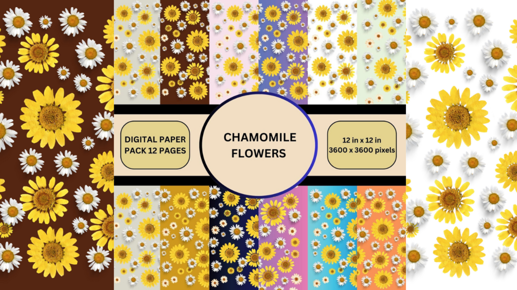 Digital Paper Pack - 12 Pages Chamomile Flowers